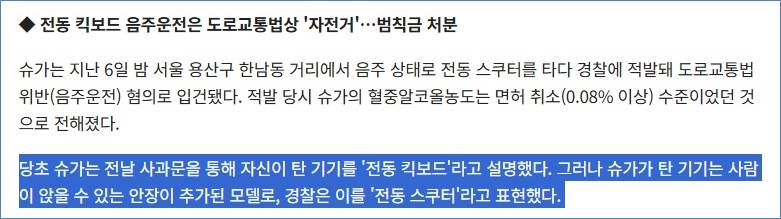 [5] [코리아헤럴드 - BTS 슈가 음주운전 사건으로 본 전동 스쿠터 규제 필요성](https://www.koreaherald.com/mobile/khpad_view.php?ud=20240808050701)